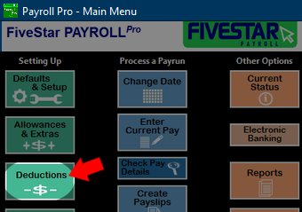Note that you cannot currently attach a bank account number to a deduction, so if any deductions need to be paid to another party, you will need to pay these to the relevant payee outside Payroll Pro.