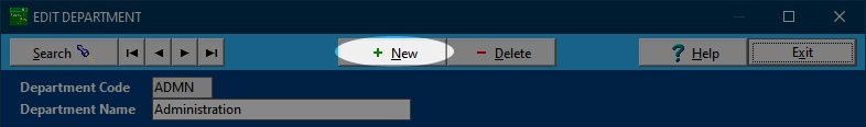 Your payroll data will come set up with the ADMN (Administration) department, but other departments can be added. If you do not want an ADMN department, then this one can be deleted. At least one department must be defined at all times, so if you want one department only which is not ADMN, then add the new department and then delete ADMN.