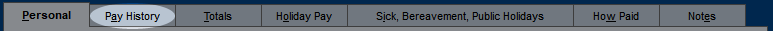 The Pay History will be blank to start with, and if this employee has just started employment, then nothing needs to be done here. A new pay history entry is automatically created when each pay run is processed (i.e. finalised using Update Totals).