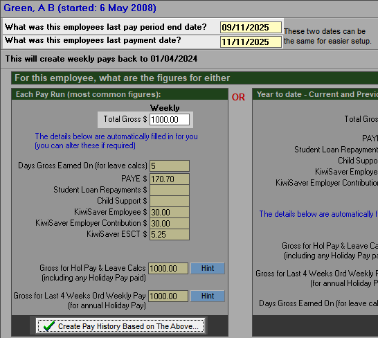 This is the quickest way to enter the initial figures into the pay history.