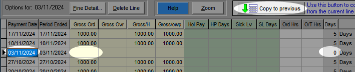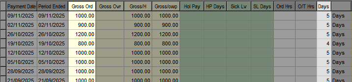 To edit this the simplest case is to treat the Gross Ord as the total gross (so not worry about the overtime field), and to change this accordingly. The Gross/H and Gross/owp fields (used for average earnings) are unlikely to be different, and these will change as well. If you will need average daily pay calculated for the employee for the purposes of average daily pay for sick leave and other relevant leave, change the Days also.