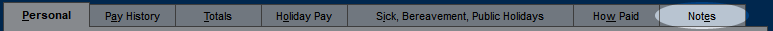 Holiday and Leave Notes can be included in (or excluded from) the Holiday and Leave Records report. The payslip message will appear at the bottom of the employee's payslip. Note that a global payslip message option is also available in "Defaults & Setup", which will automatically fill in this message box for all employees.