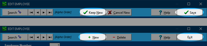 When you have finished entering a new employee, you can either click Keep New or Save - both have the same affect.